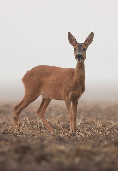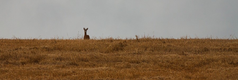 Keď sme sa po viac ako mesiaci vrátili domov chceli sme ísť zistiť ako to v našej obľúbenej oblasti vyzerá. Pre ranný fotolov sme si vybrali pole na ktorom sme na jar vídavali dosť veľa srncov. Chodil tam aj srnec, ktorého sme pomenovali Kališnik. Pozorovali sme ho ešte keď mu parožie pokrývalo lyko aj neskôr keď ho vytĺkal. Skrátka tento srnec nám prirástol k srdcu. Na mieste nás čakalo sklamanie. Na poli nebolo obilné strnisko, ako sme predpokladali, ale bolo už poorané. Preto sme tam nečakali moc veľkú prítomnosť zvere. Usadili sme sa na kraji poľa a čakali na svetlo. Po nejakom čase sa v dosť veľkej diaľke objavila srna. Po krátkom pozorovaní sme zistili že ide smerom k nám, a tak sme s očakávaním dúfali že sa priblíži čo najviac. Prešla celé veľké pole, a prišla rovno k nám.