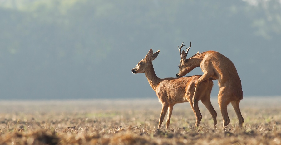 Pri tom sa k nám priblížili. Neváhali sme a pustili sa do fotenia. Srnec sa so srnou naháňali, potom srna pomaly spomalila, a Kališnikovi umožnila párenie...